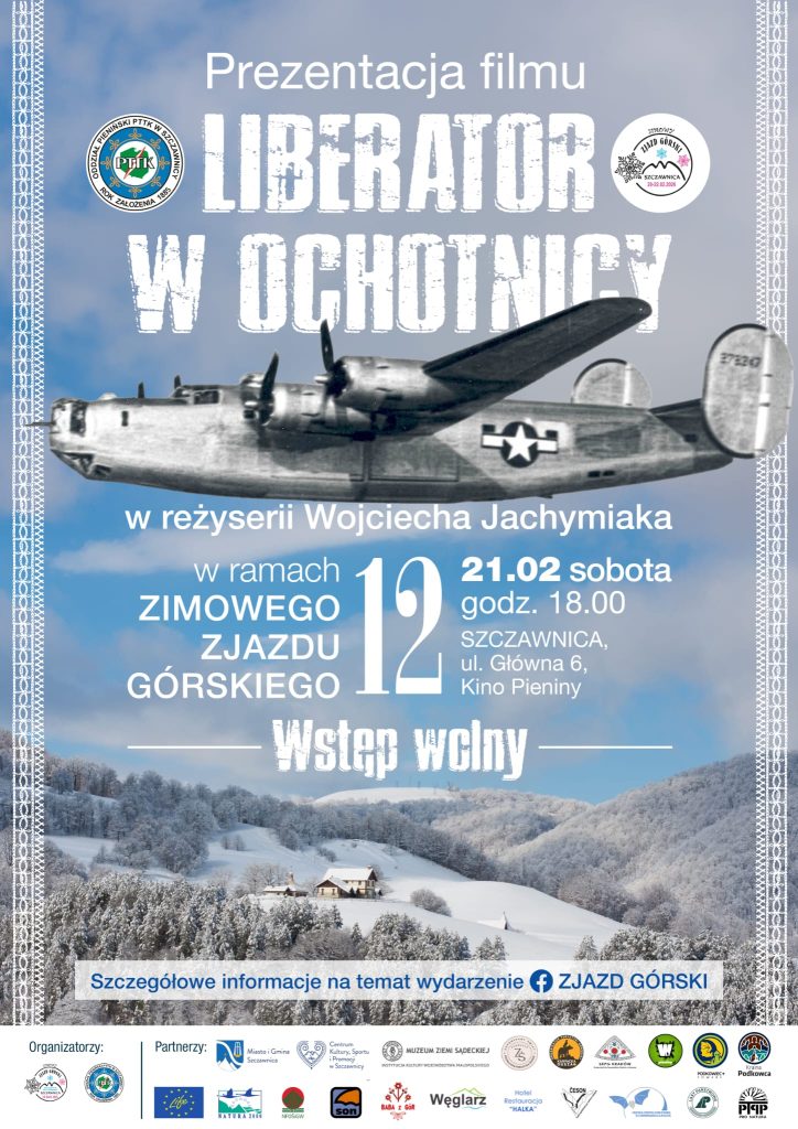 Podczas 12 Zimowego Zjazdu Górskiego w Szczawnicy odbędzie się wiele wydarzeń wpisujących się w tematykę Karpat. Jednym z wydarzeń będzie projekcja filmu pt. „Liberator w Ochotnicy” wyprodukowanego przez nasze Studio filmowe Uniwersytet Człowieka Ognik. Zobaczymy go w drugim dniu zjazdu (sobota) o godz. 18.00. Ostatni fragment lotu liberatora „California Rocket”, który rozbił się w pobliskiej Ochotnicy mogli widzieć mieszkańcy Szczawnicy. Samolot lecący doliną Kamienicy od strony Lubomierza, w rejonie Tylmanowej wykonał skręt w kierunku Pasma. Lubania. Właśnie w tym rejonie, gdzieś w okolicy Łącka, został zaatakowany przez 3 niemieckie myśliwce Messerschmitt 109. Sceny ataku Myśliwców były widoczne ze Szczawnicy. Podobnie jak i kolejne sceny ostatnich minut lotu Liberatora, kiedy to nad Pasmem Lubania wyskoczyła załoga samolotu. Wtedy to maszyna leciała na skrajnym lewym silniku. Pozostałe 3 silniki już nie pracowały stąd samolot naturalnie skręcał spiralnie w prawa stronę, aż do upadku w rejonie dzisiejszej wieży widokowej na Magurkach.