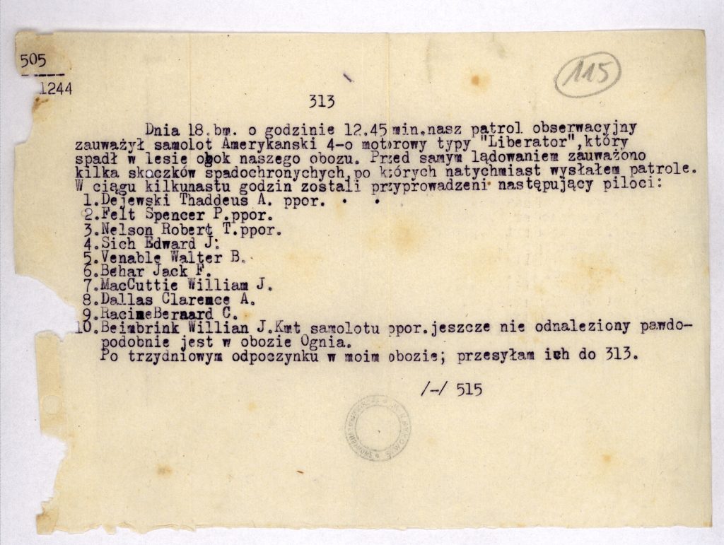 Gdy weszliśmy na kurs bojowy, zaczęły się nasze kłopoty. Najpierw silnik nr 3 utracił ciśnienie oleju a wydawało się, że silnik nr 2 będzie następny. Beimbrink zapytał mnie o kurs powrotny do Woch; jakże to było stamtąd daleko! Powiedziałem, żeby wziął kurs 1800 i szybko powinienem dać mu korektę kursu. Uczynił zwrot, o czym zrzuciliśmy zabezpieczone bomby niedaleko Pszczyny. Tak jak obawialiśmy się, Numer Dwa zaczął nawalać i zdechł. Lecieliśmy teraz na dwóch zewnetrznych silnikach i wiedzieliśmy już, że nie dotrzemy do Włoch. Beimbrink poprosił mnie o poprowadzenie za linie rosyjskie.. Podałem mu kurs 900 i zaraz skorygowałem na 1150 ponieważ nadlatywaliśmy na duże miasto (Kraków) i nie chcieliśmy przelatywać ponad nim.